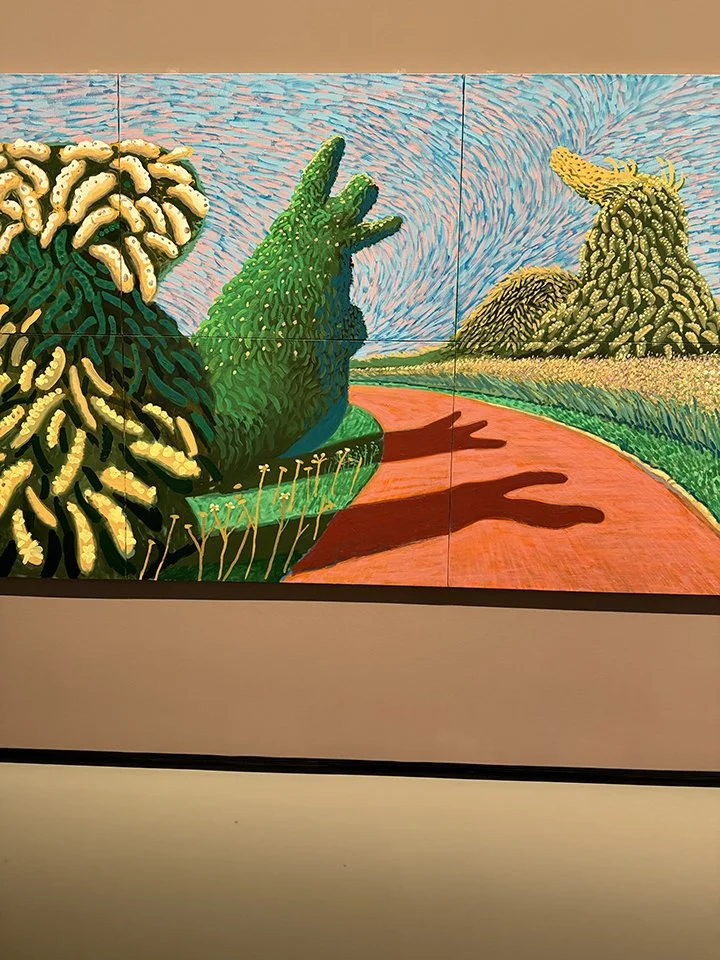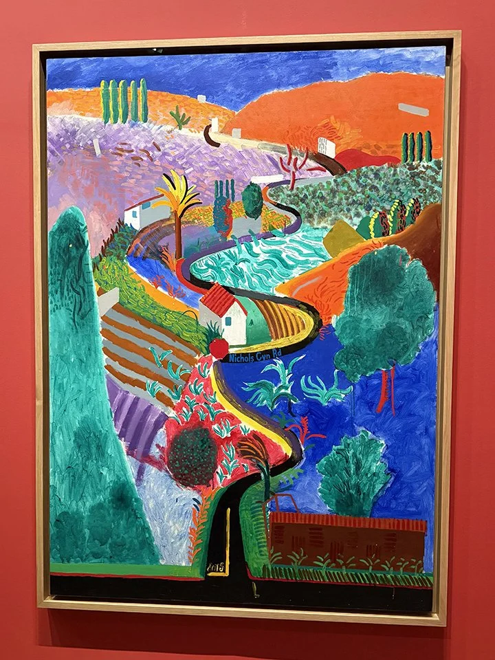 Inside, Hockney 25 traced more than six decades of Hockney’s creative journey. His vibrant use of colour and masterful compositions were on full display—from the iconic California pool paintings and intimate portraits to expansive landscapes of the English countryside and his more recent iPad drawings. I loved seeing how he embraced different mediums and technologies without ever losing his playful, observant spirit.